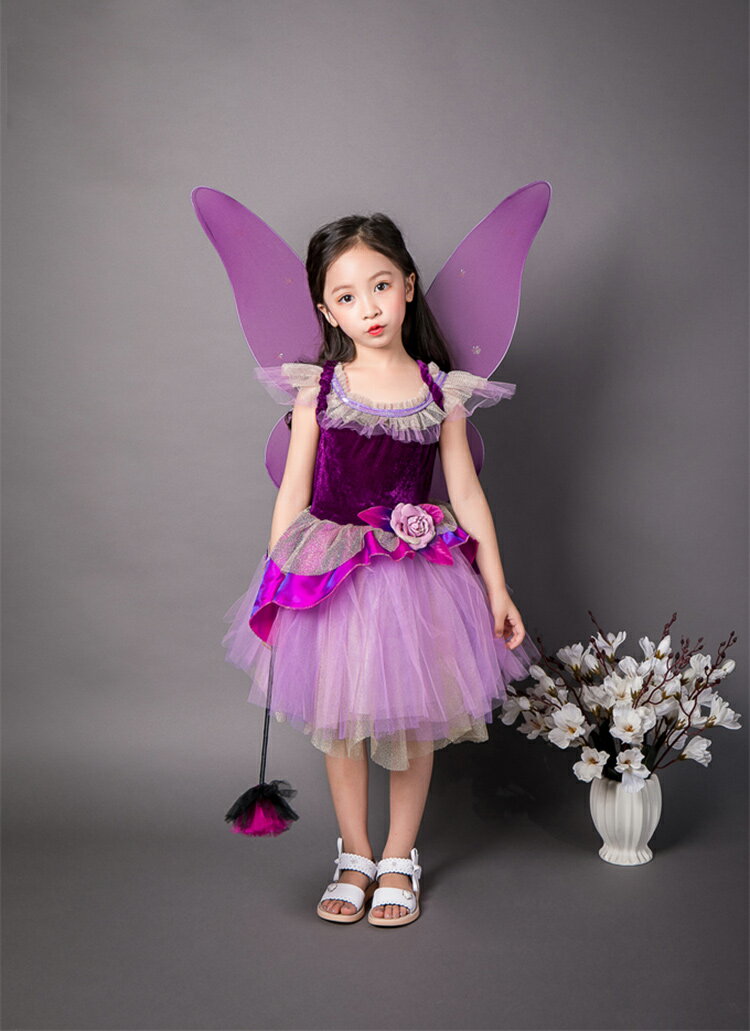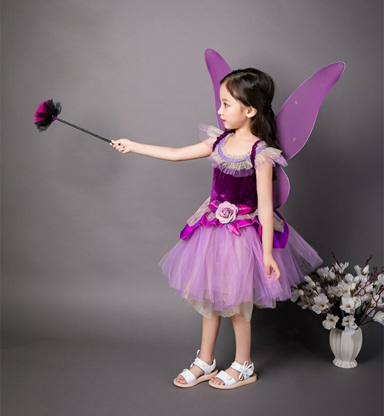 【送料無料】子供 女の子 プリンセス ドレス キッズ衣装 ワンピース ピンク 紫 コスチューム コスプレ衣装 3点セット 翼付き 花の妖精 キッズ ファンタジードレス 演出服 コスプレ衣装 ハロウィーン パーティー イベント仮装 変装 妖精 子供ドレス 演出服 100 110 120 130